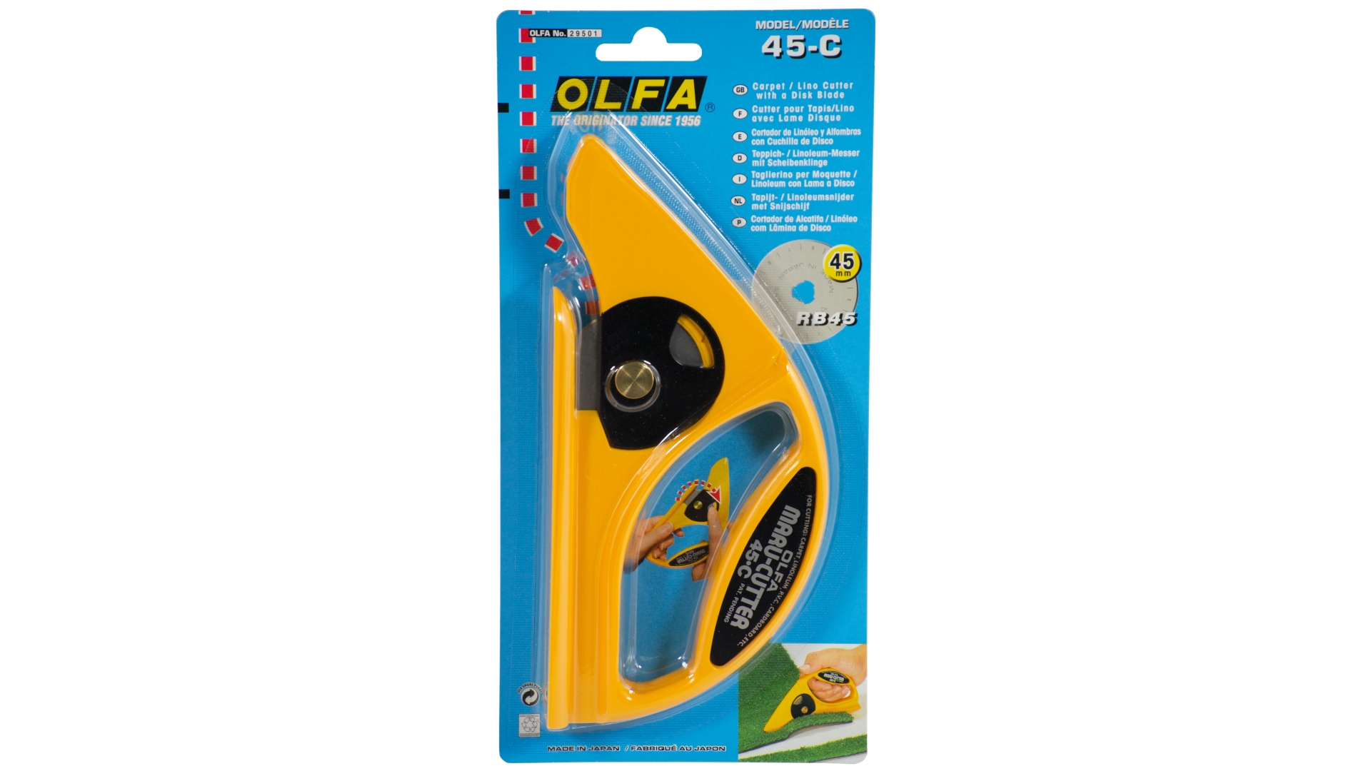 Das OLFA® 45C ist ein Teppichmesser mit einer rotierenden 45mm-Klinge und eignet sich besonders gut für das Schneiden von Linoleum, Teppich, etc. Sicherheitshinweis: Dieses Messer ist äußerst scharf! Nur für erfahrene Nutzer empfohlen. Unbedingt außerhalb der Reichweite von Kindern aufbewahren!