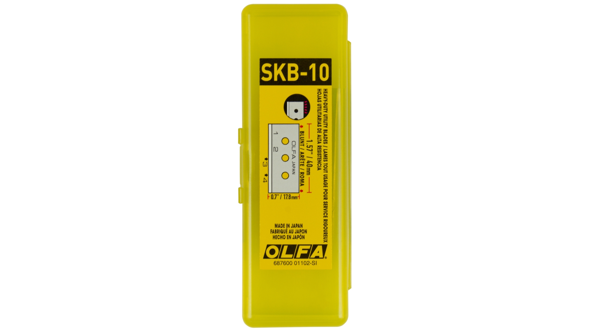 Bei OLFA® PB-800 handelt es sich um drei doppelseitige Ersatzklingen für das Kunststoff-, Acryl- und Laminatschneider OLFA® PC-L. Diese Klingen sind aus hochwertigem Wolfram-Werkzeugstahl hergestellt, der präzise und akkurate Sollbruchstellen ermöglicht. Zwei Schneidkanten pro Klinge. Die Klingen eignen sich gut, um Plastik, beleuchtete Deckenplatten und Plexiglas im handwerklichen und industriellen Einsatz zu schneiden. Die Verpackung enthält 3 Klingen in einer praktischen Kunststoffbox. Sicherheitshinweis: Diese Klingen sind äußerst scharf! Nur für erfahrene Nutzer empfohlen. Unbedingt außerhalb der Reichweite von Kindern aufbewahren!